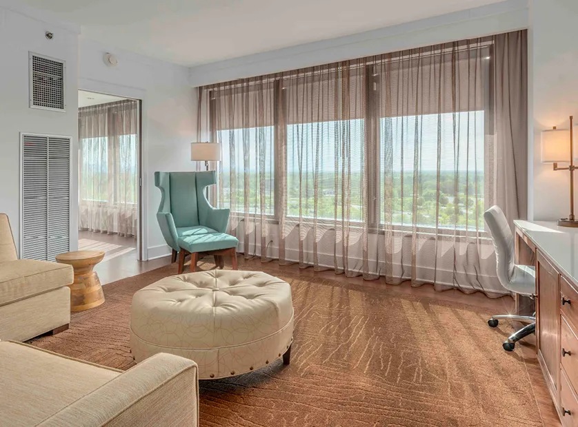 Be in the center of it all at The Tower at Turning Stone, the tallest building between Albany and Syracuse that offers stunning panoramic views of the countryside. Our AAA Four Diamond hotel includes standard guest rooms, corporate meeting rooms as well as suites on the 20th floor. The Tower is close to The Event Center, perfect for guests planning to see a show or visit an expo. There's plenty more to do nearby, like working up a sweat using the state-of-the-art equipment and amenities at The Tower Fitness Club. Once you have an appetite, dine in style at the TS Steakhouse on the 21st floor, or head downstairs to eat at 7 Kitchens. Easy access to the gaming floor and don’t forget about The Commons, which feature 4,500 square feet of boutique shopping