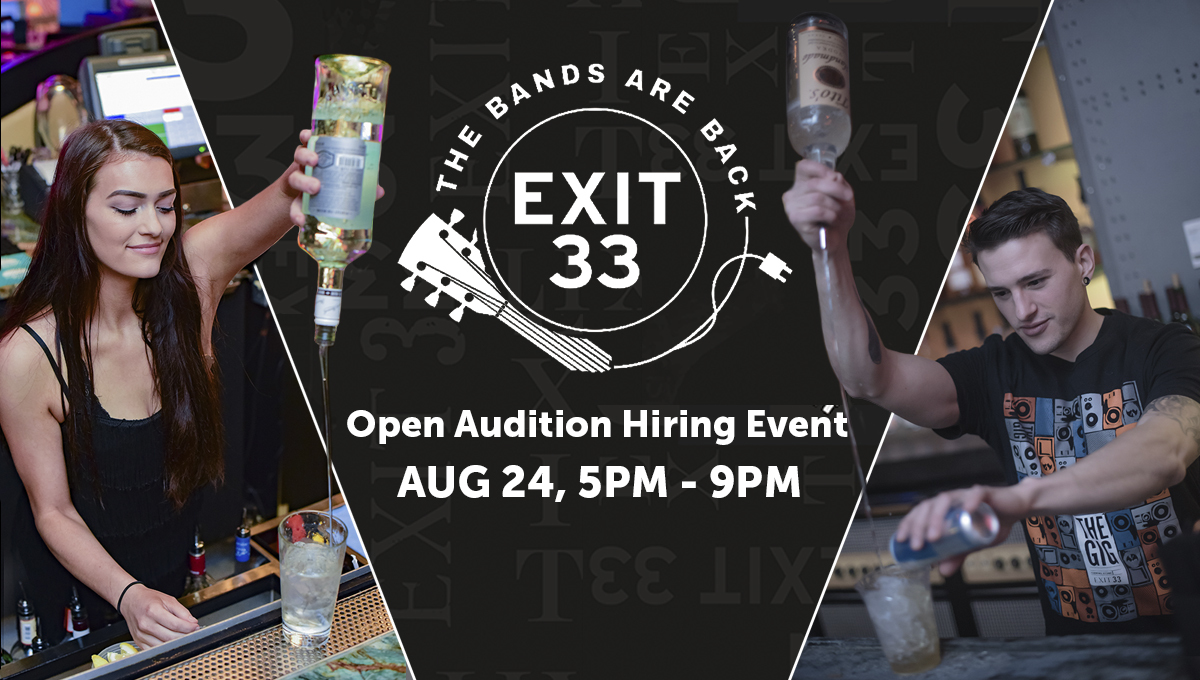 Exit 33 Open Auditions: Tuesday, August 24; 5:00pm - 9:00pm