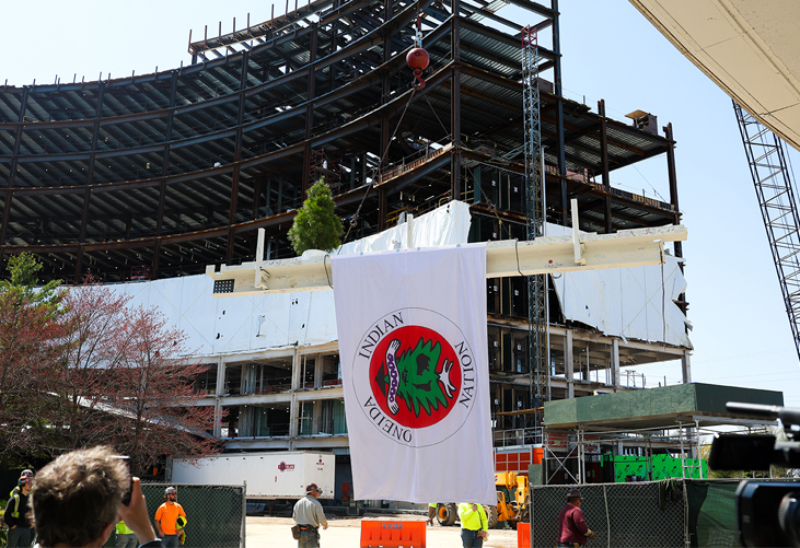 The Oneida Indian Nation, joined by elected officials, construction partners and community leaders, gathered today to raise the final beam for The Crescent Hotel, part of the $370 million Turning Stone Evolution. This massive expansion will build upon the resort’s existing amenities to make Turning Stone and Upstate New York premier destinations for business and leisure travel.
