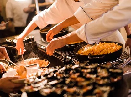 - Stations with Choice of One Salad, One Starch, One Seafood and Two Meats