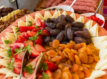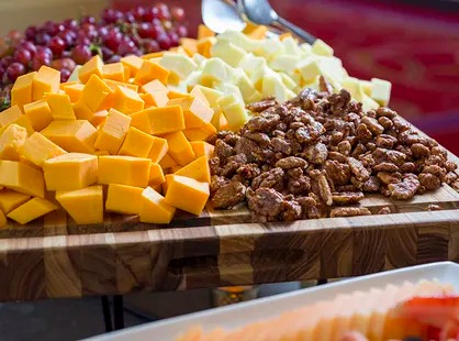 Artisanal Meats and Cheese, Olives, Sweet & Hot Peppers, Vegetable Crudité with Hummus and Green Goddess Dressing, Seasonal Fruit and Berries, Baguettes and Crackers